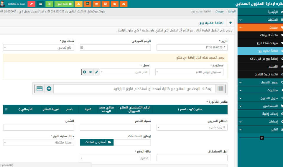 اضافة عملية بيع