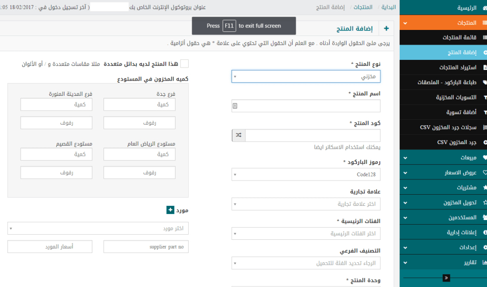 اضافة منتج جديد