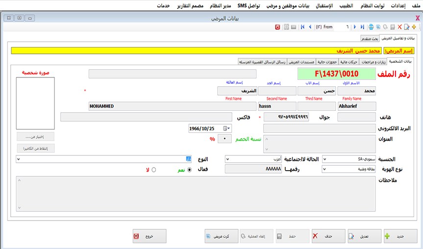 مريض جديد وبياناته