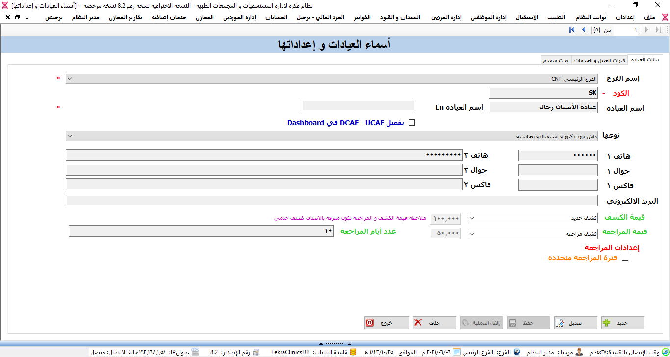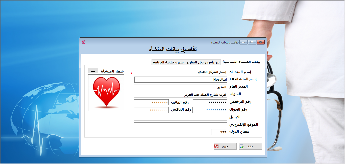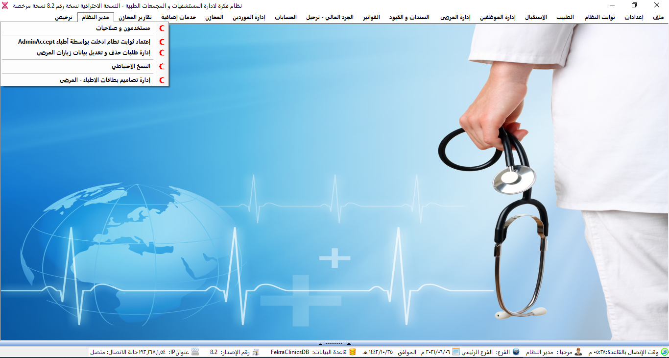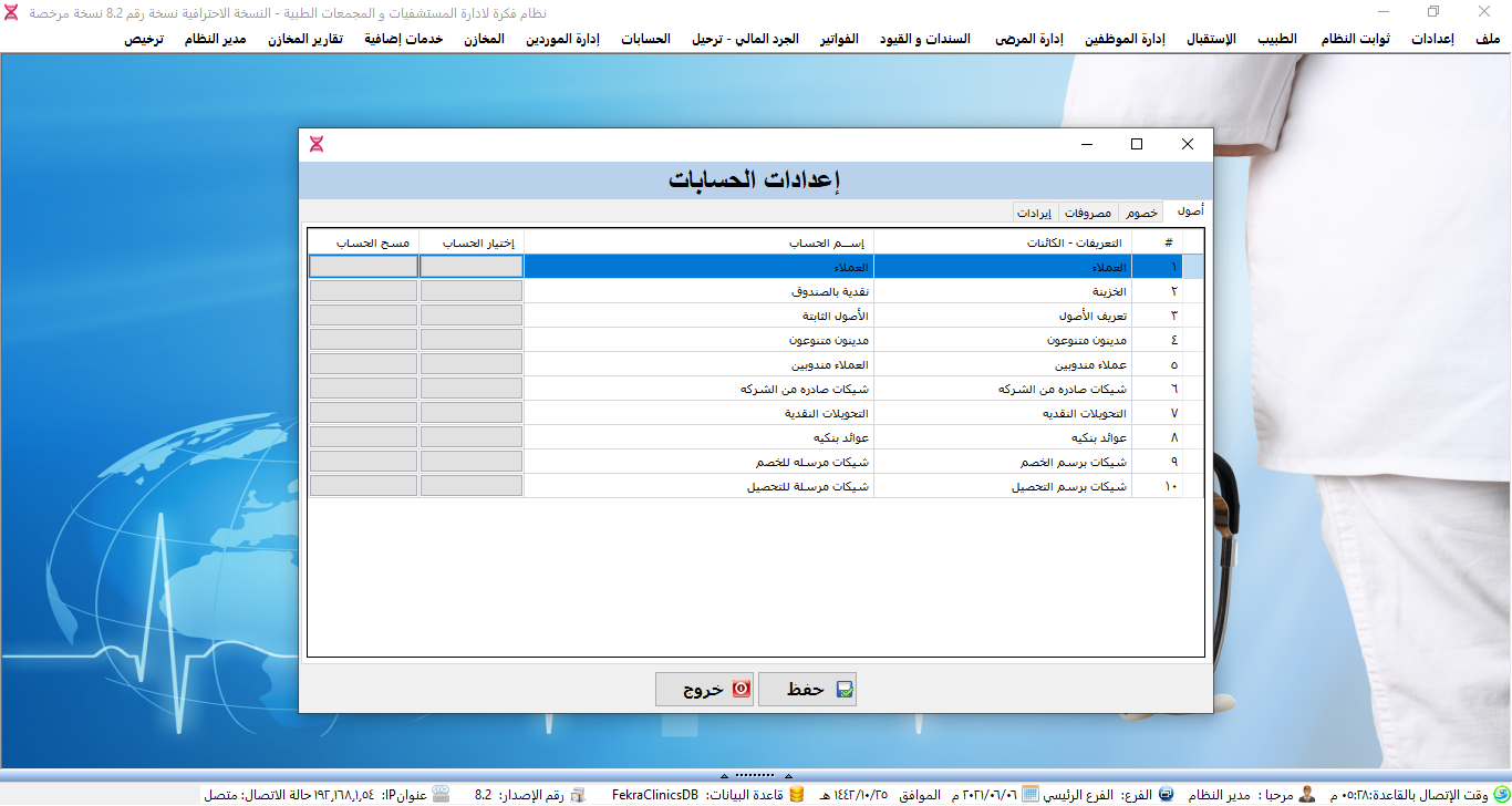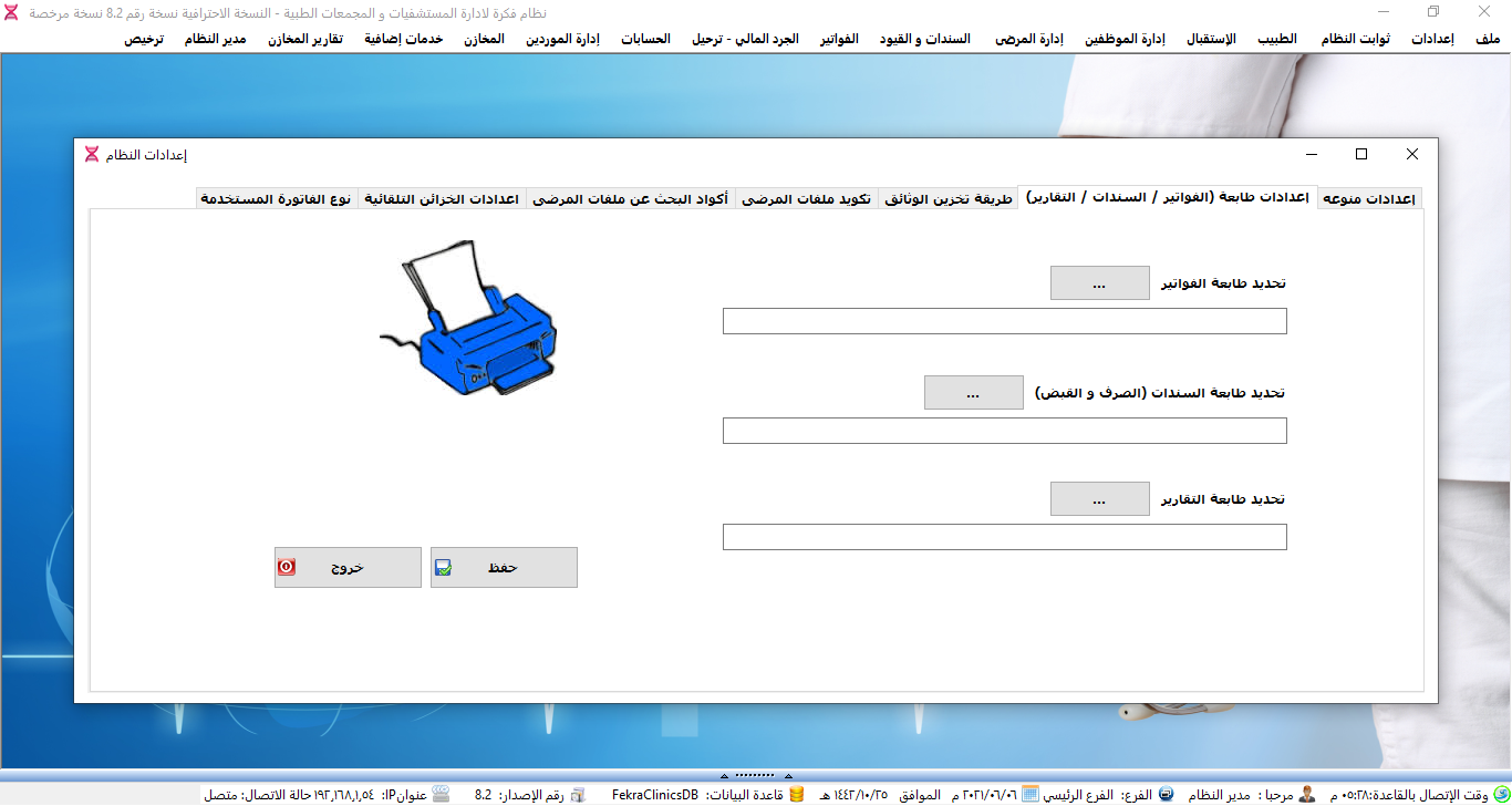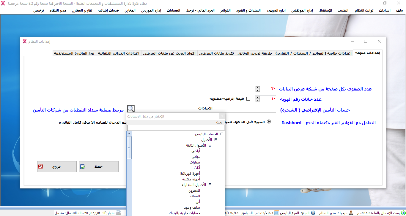 نظام ادارة العيادات الطبية ولوحة تحكم البرنامج.