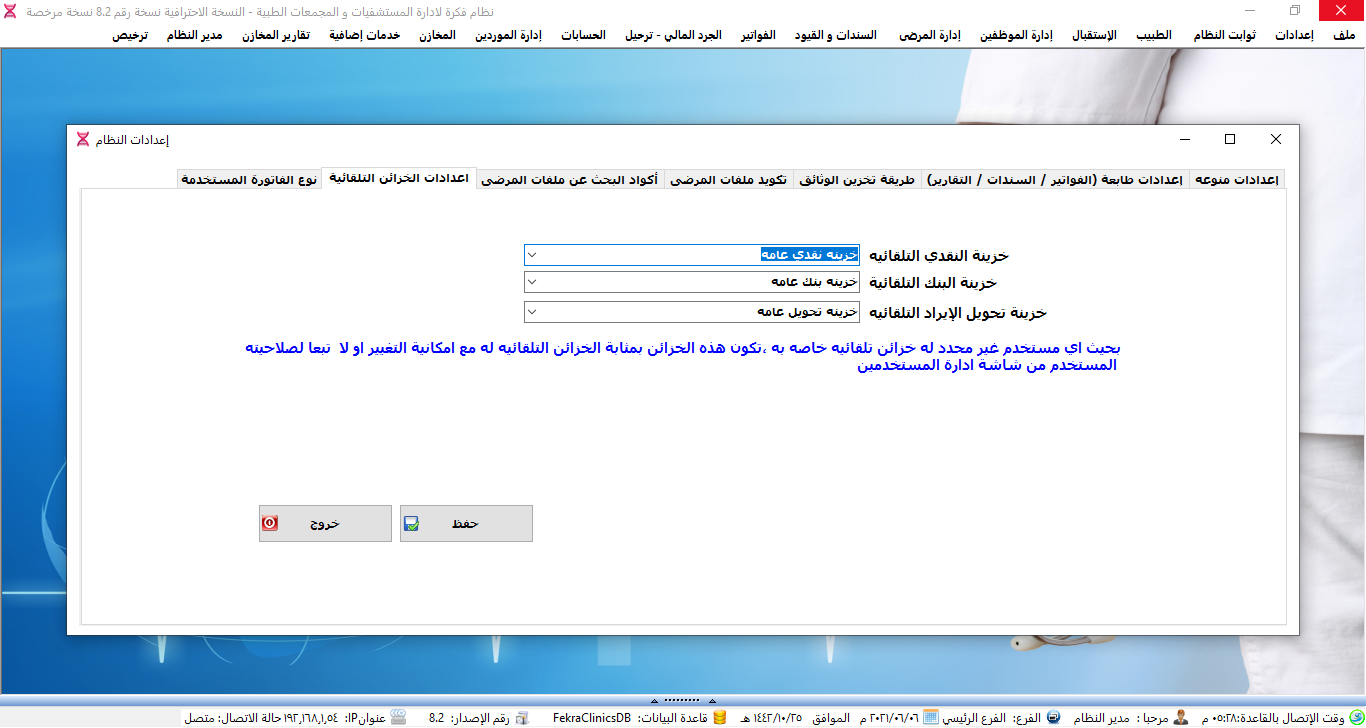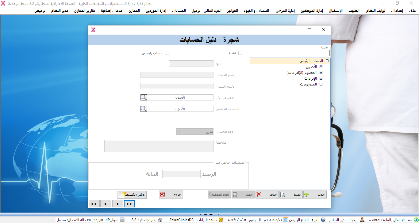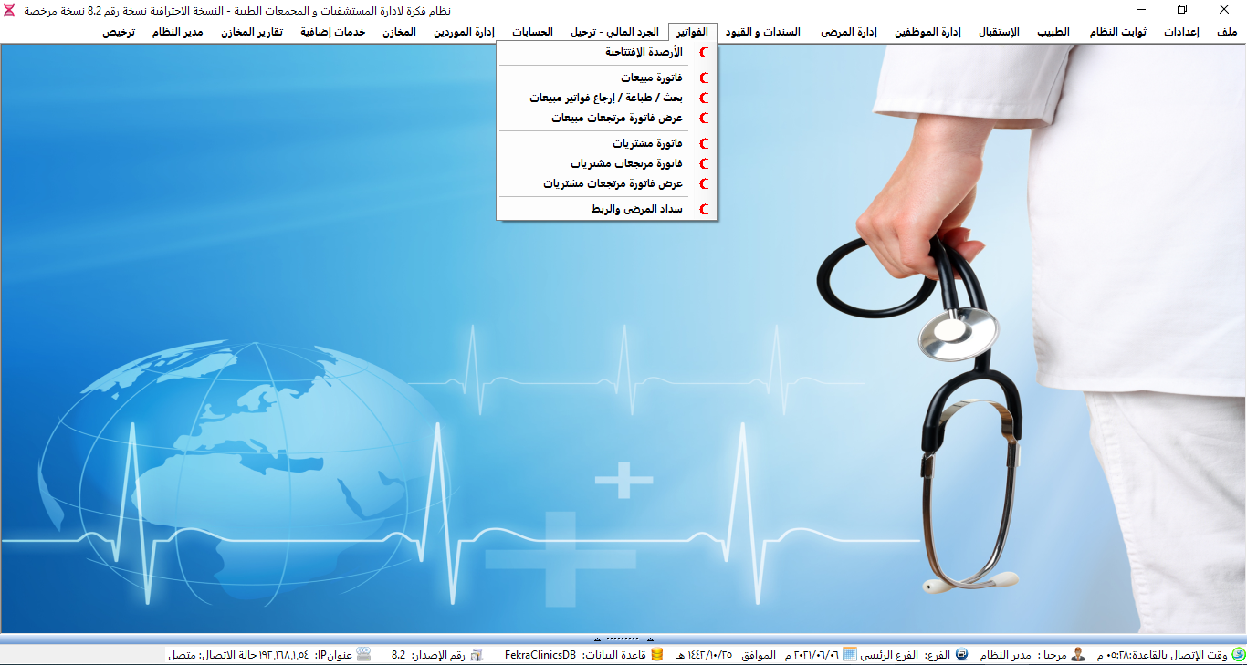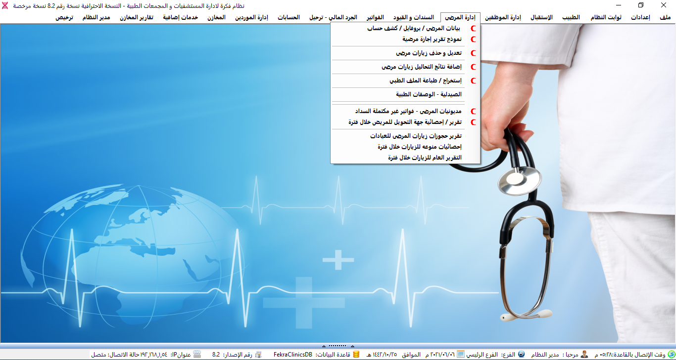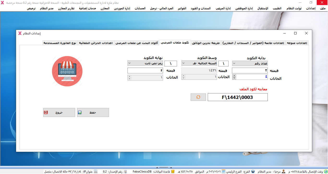 نظام ادارة العيادات الطبية ولوحة تحكم البرنامج.
