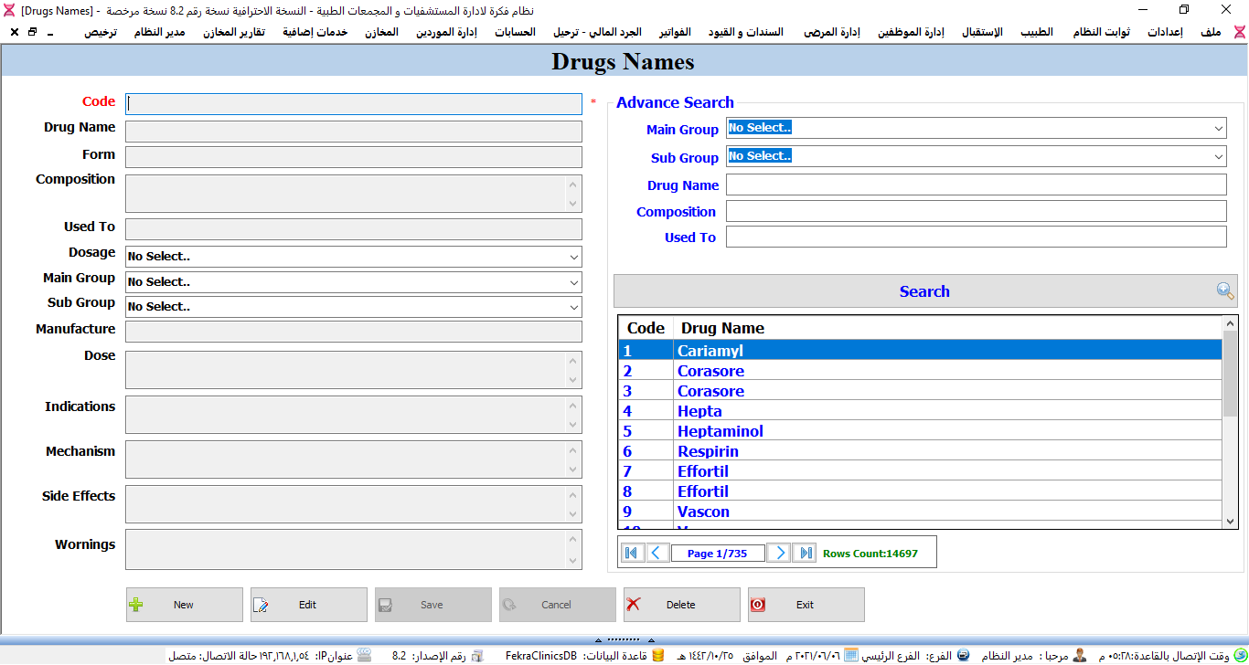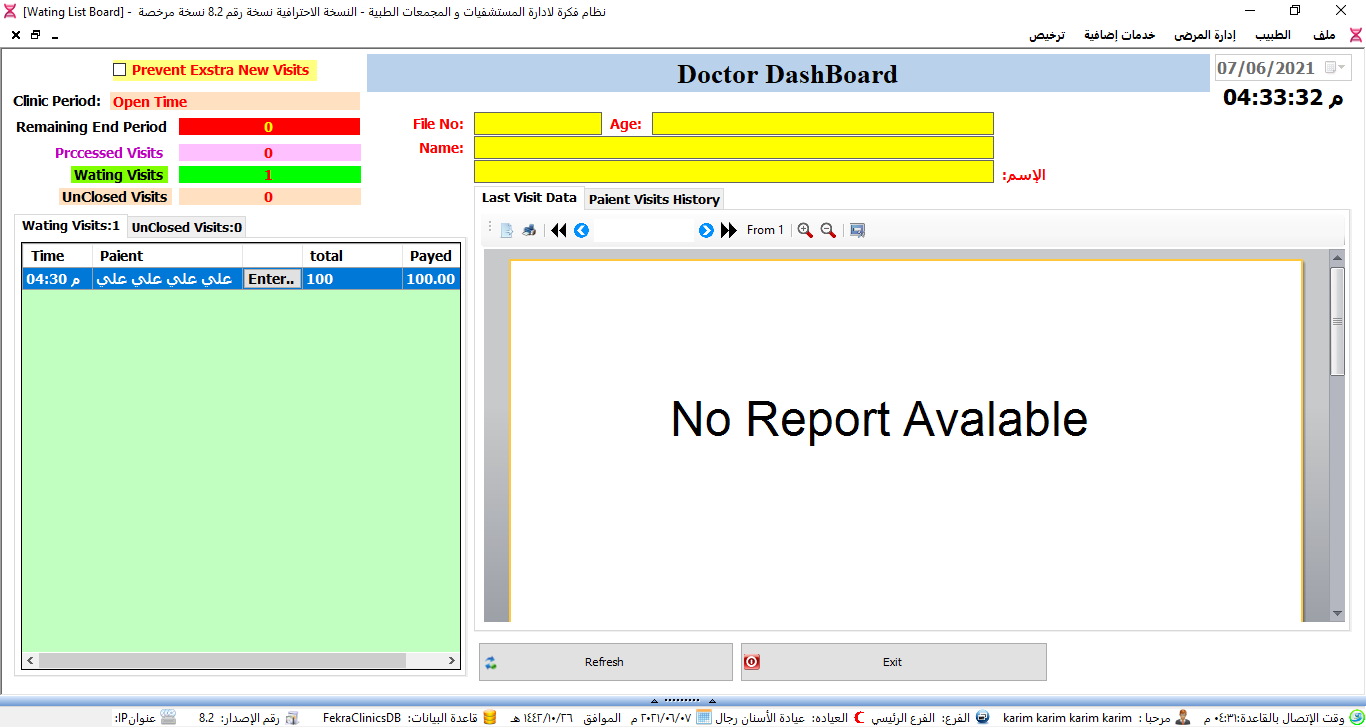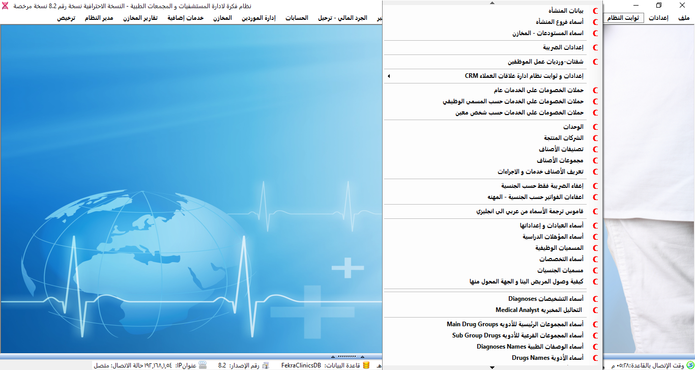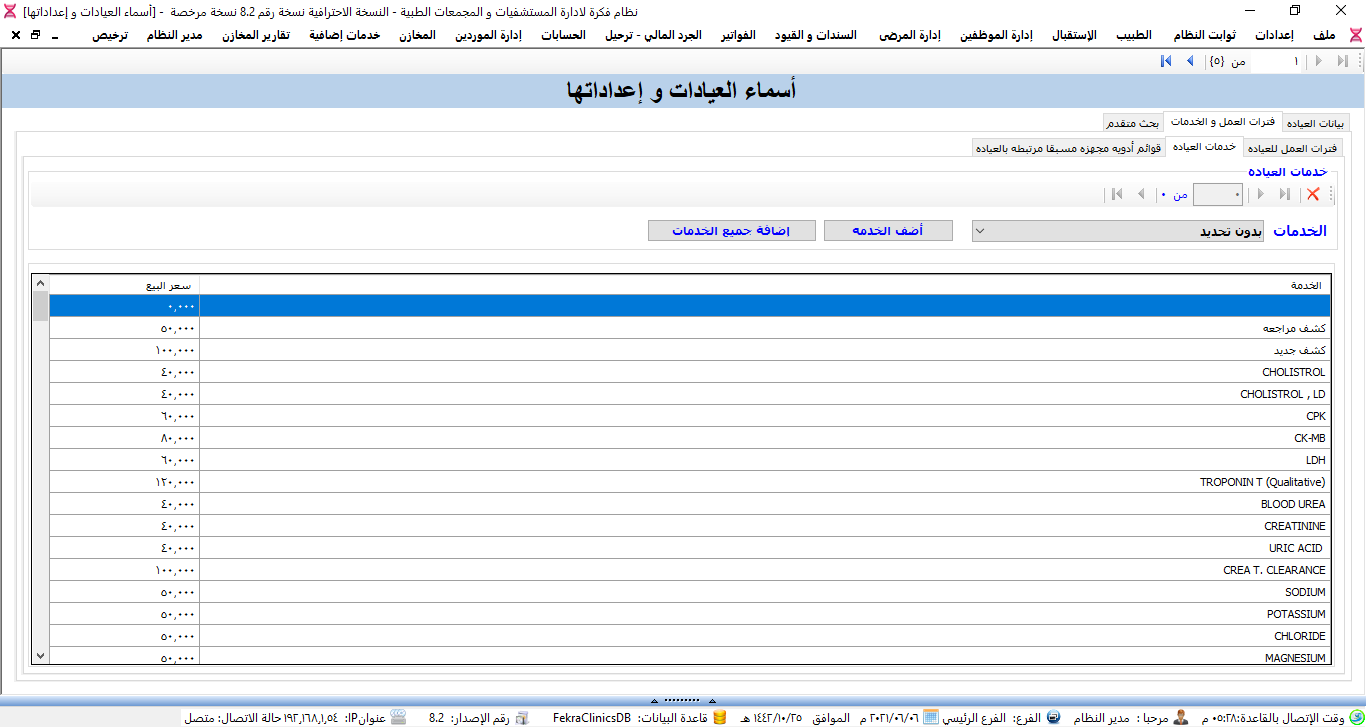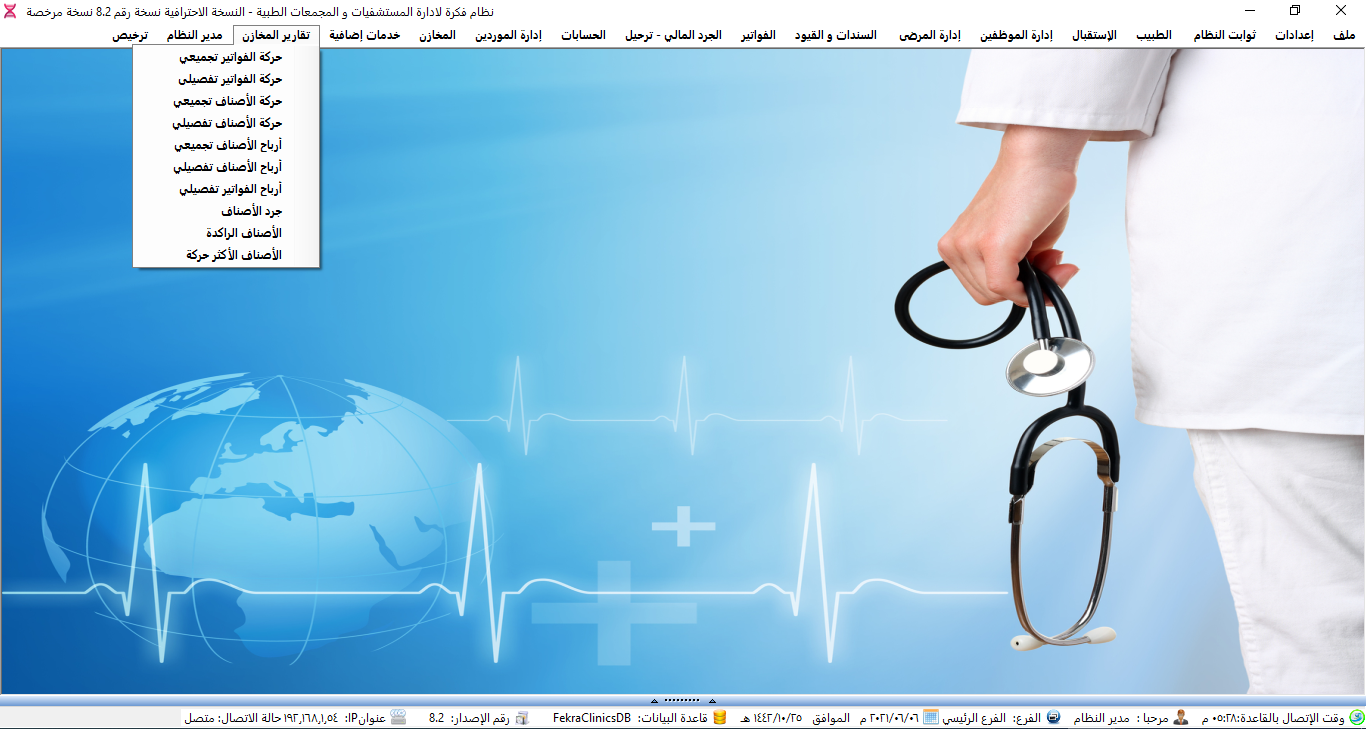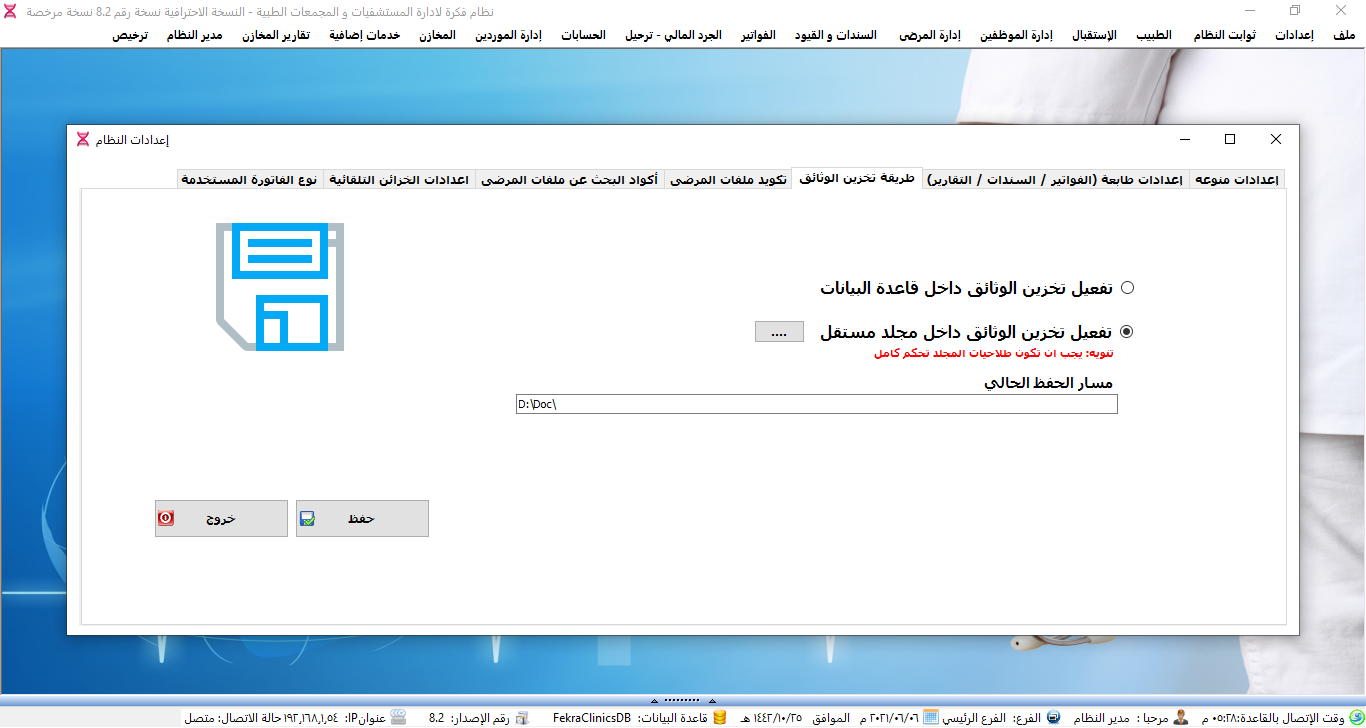 نظام ادارة العيادات الطبية ولوحة تحكم البرنامج.
