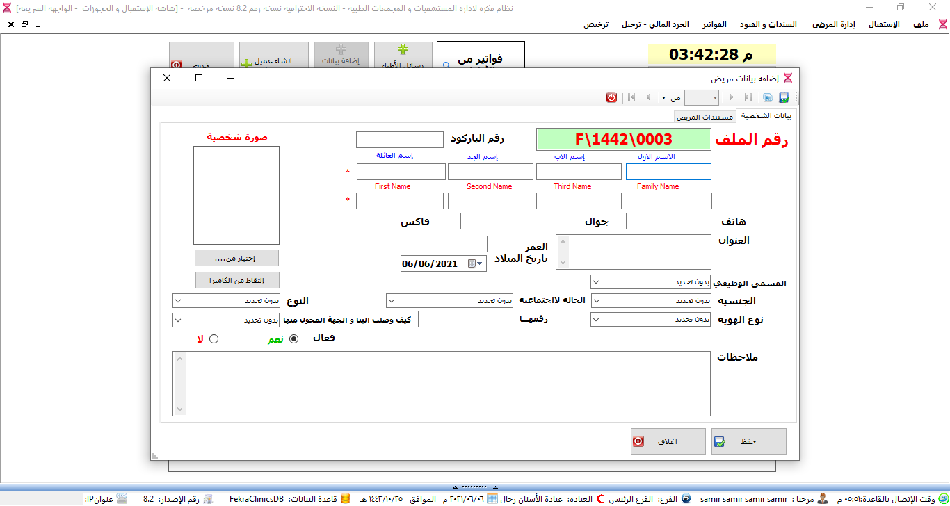 لقطات حية من برنامج إدارة المراكز الطبية والعيادات، مزايا بلا حدود