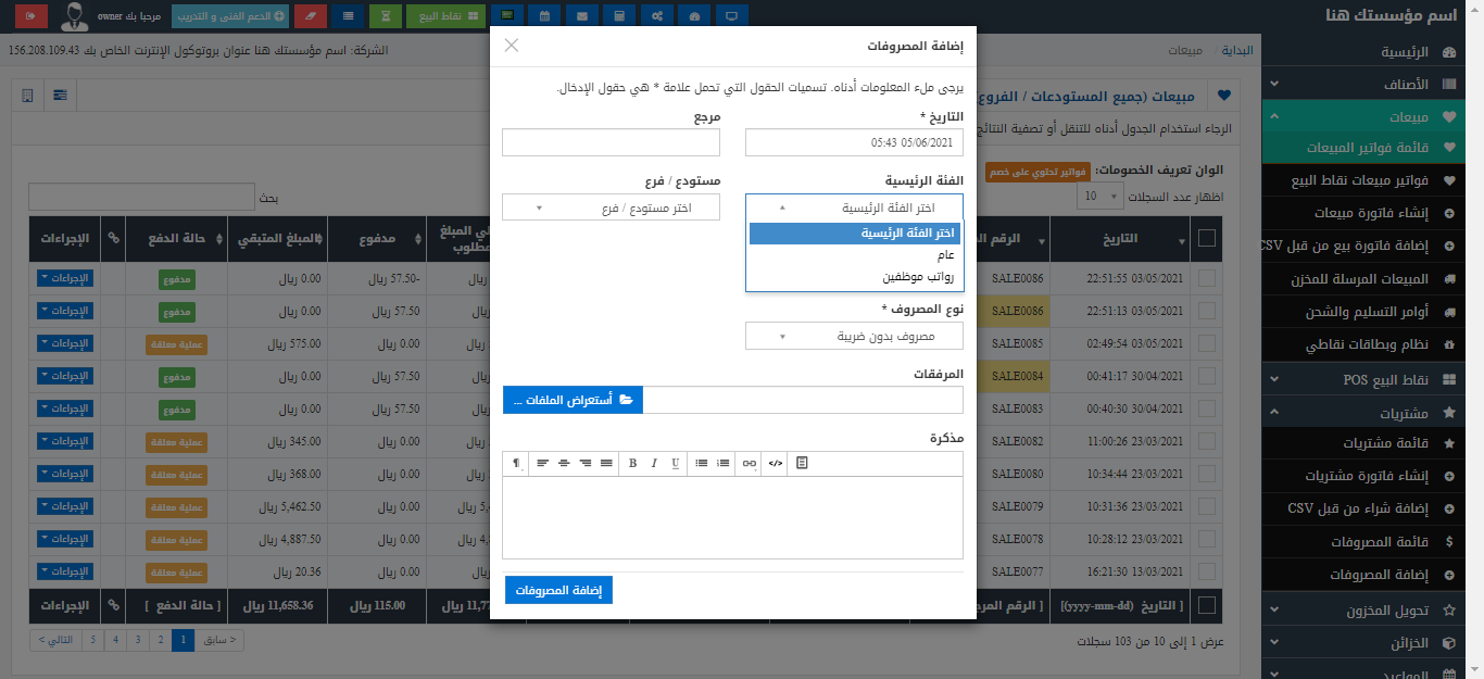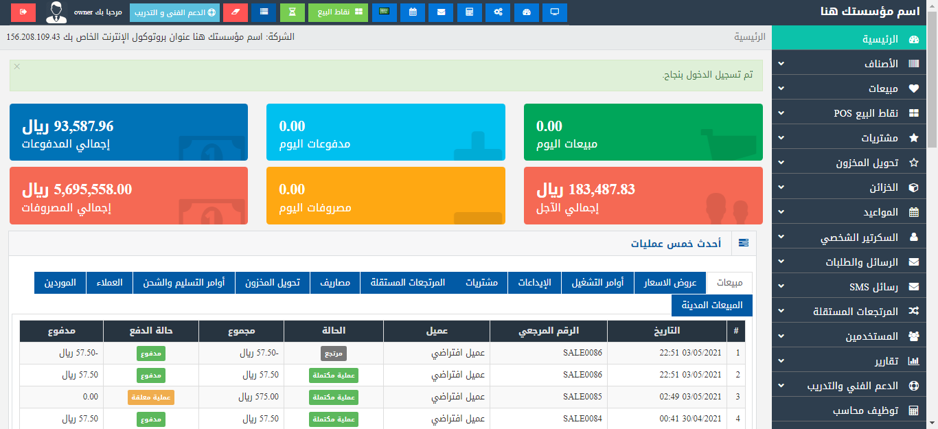 يدعم الفوترة الإلكترونية بالربط مع هيئة الزكاة والضريبة