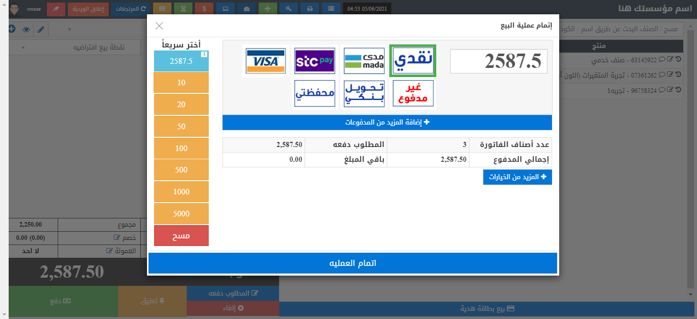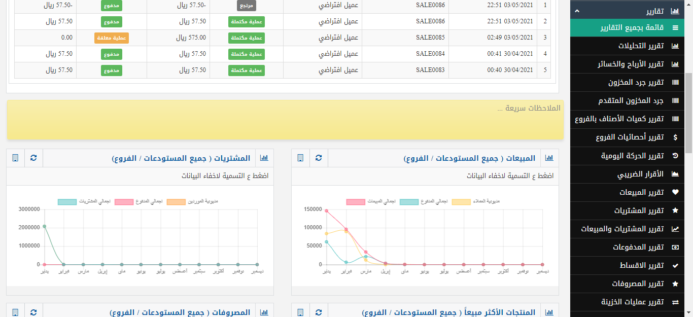 لقطات من نظام للمحاسبة وإدارة المخزون والمبيعات POS
